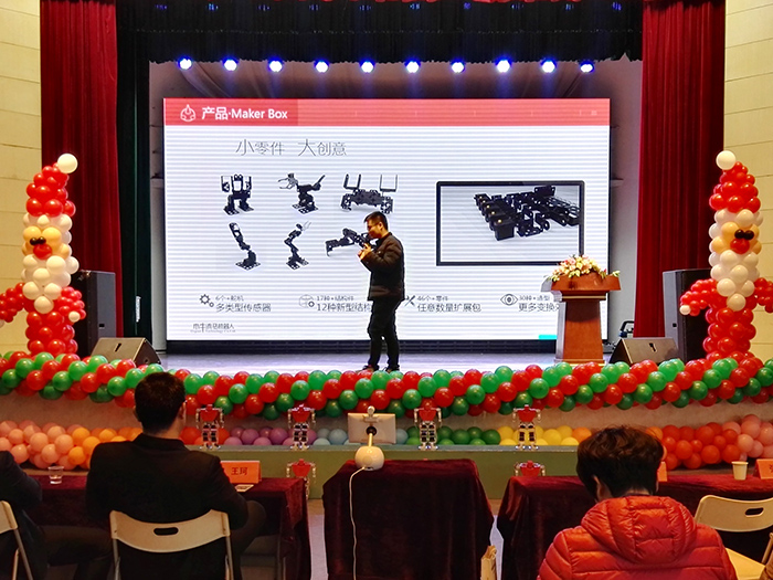 此次大會(huì)木牛流馬機(jī)器人公司發(fā)布2017年即將上市的全球首款關(guān)節(jié)類機(jī)器人教育套件。Maker Box關(guān)節(jié)類機(jī)器人作為一款專門(mén)針對(duì) 7 歲及以上機(jī)器人愛(ài)好者設(shè)計(jì)的一款機(jī)器人入門(mén)套件,是由控制板、舵機(jī)、連接件等多種零件組成,可以組裝成多種款式,并且通過(guò)簡(jiǎn)單的軟件編程可以實(shí)現(xiàn)不同的功能。